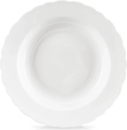 Hluboký talíř MONA v nadčasové bílé barvě doladí každý stůl. Jemný, dekorativně vlněný okraj a lesklá glazura podtrhují elegantní vzhled, který skvěle ladí s jakoukoli jídelní soupravou. Praktická hloubka a tvar umožňují pohodlné servírování polévek, vývarů i těstovin.