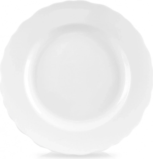 Univerzální dezertní talíř z kolekce Mona zaujme čistou bílou barvou a dekorativně vlnitým rantlem. Je praktický pro každodenní používání i slavnostní tabule – perfektní na dorty, dezerty, jednohubky i menší porce snídaní či večeří.