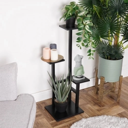 Konstrukce z černě lakovaného kovu a polic z MDF se strukturovaným povrchem zajišťuje pevnost a snadnou údržbu. Díky vysoké stabilitě jej můžete umístit do obývacího pokoje, kuchyně, předsíně i pracovny. Základna poskytne další plochu pro větší květináč.