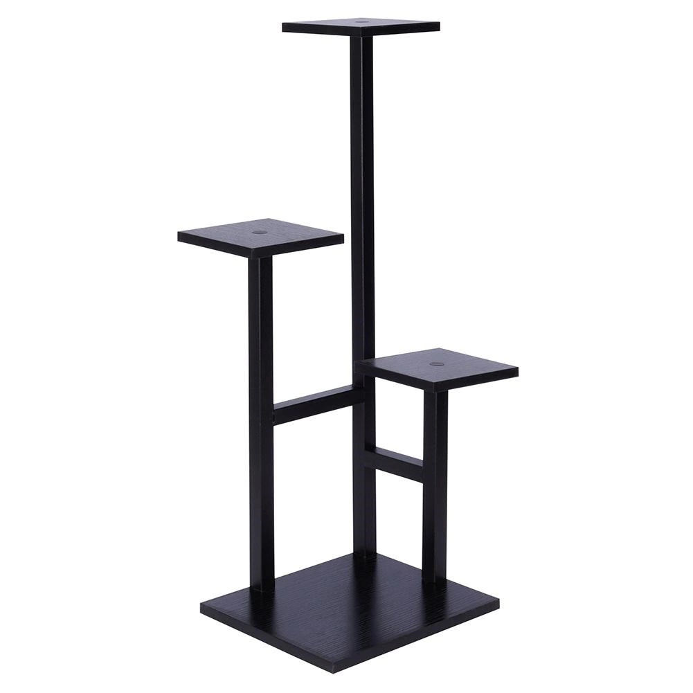 Elegantní čtyřpatrový květinový stojan s kompaktní základnou šetří místo a přehledně vystaví vaše rostliny i dekorace. Má rozměry 36,5 × 32 × 84 cm a unese až 15 kg (max. 5 kg na polici). Kombinace odolného kovu a MDF s dekorem dřeva v černé barvě, stabilní konstrukce a industriální styl se hodí do obýváku, kanceláře i na balkon.