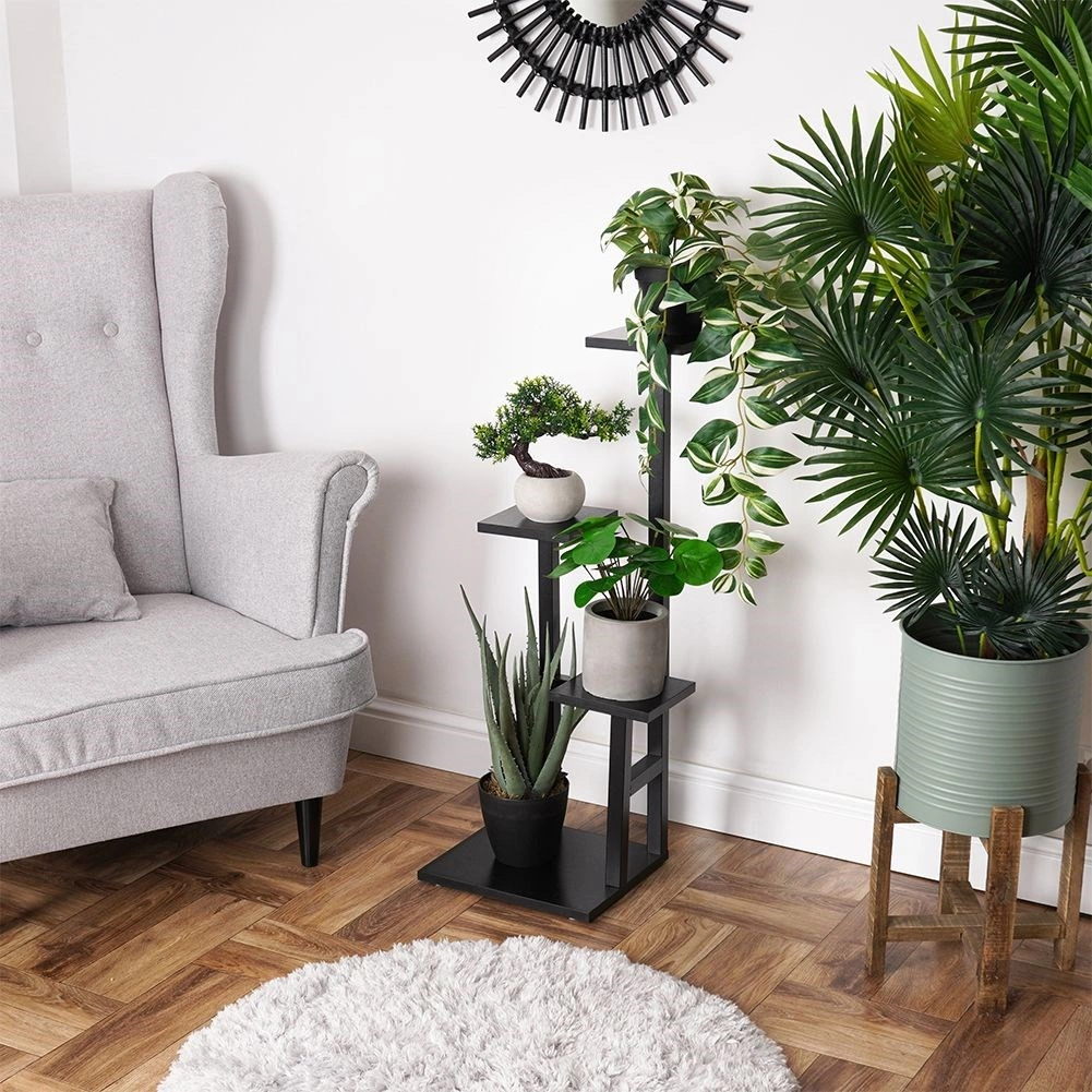 Víceúrovňové vystavení na čtyřech různých výškách vytváří atraktivní kompozice zeleně a dekorací, přičemž minimálně zatěžuje podlahovou plochu. Stojan je ideální pro živé i umělé rostliny a svým moderním loftovým designem dodá interiéru osobitý charakter.