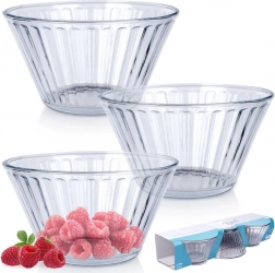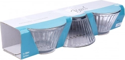 Praktická sada tří skleněných misek o objemu 270 ml z transparentního skla s elegantním žebrováním. Skvělé pro každodenní použití i slavnostní servírování. Využijete je na dezerty, omáčky a dipy, salátky i snacky. Díky klasickému designu ladí s každou výbavou kuchyně a dají se mýt v myčce.