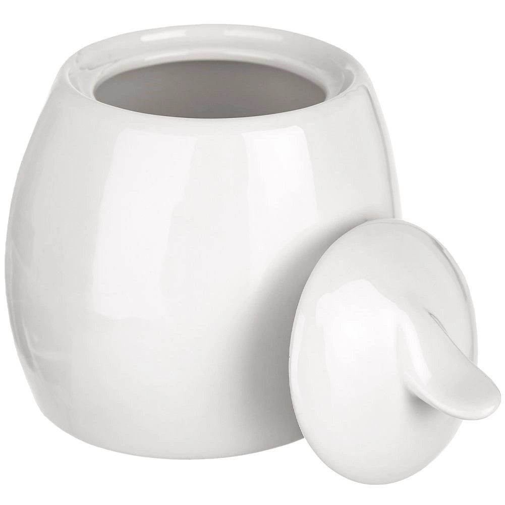 Stylová cukřenka z kvalitní bílé porcelány přináší kombinaci elegantního vzhledu a praktického využití. Díky kompaktním rozměrům se krásně vyjímá na stole a víčko s úchytem udrží obsah déle čerstvý a chráněný.