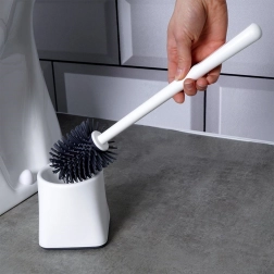 Praktická silikonová toaletní štětka se stabilním stojanem pro hygienické odkládání. Díky flexibilním silikonovým štětinám účinně čistí i pod okrajem mísy, nepoškrábe povrch a snadno se udržuje v čistotě. Lehká a odolná konstrukce v moderní bílé barvě se hodí do každé koupelny.