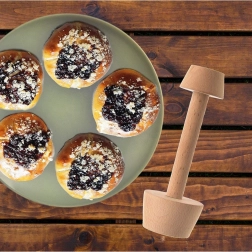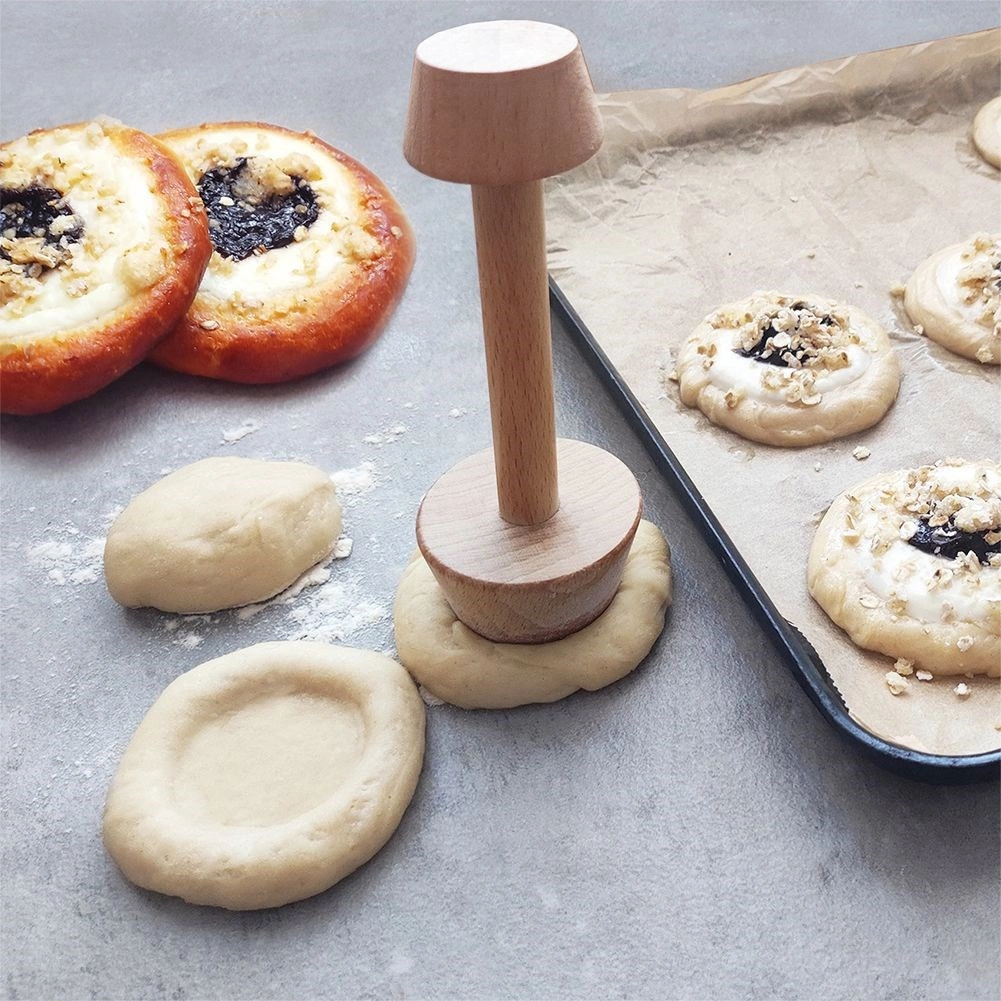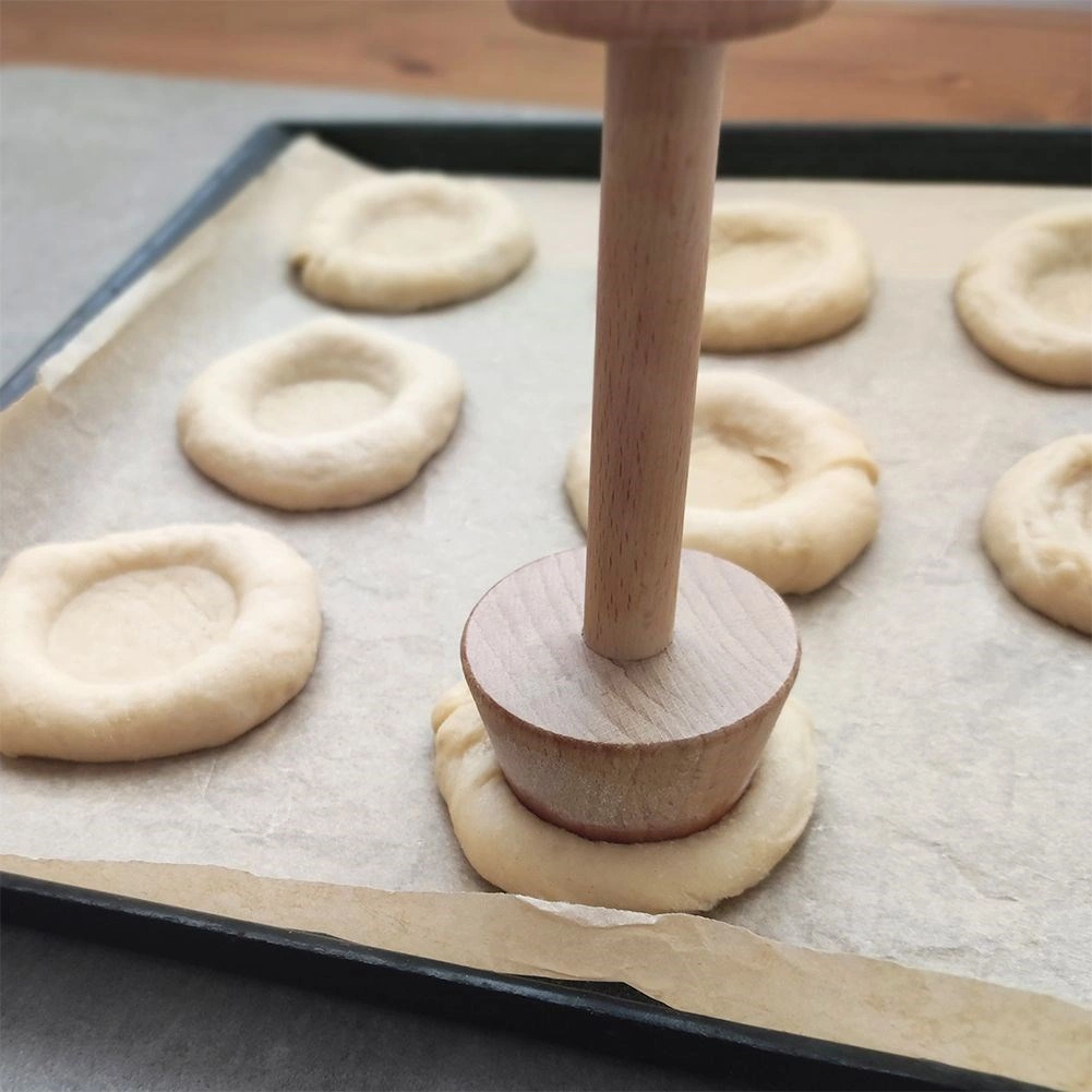 Tento oboustranný pěchovač usnadní přípravu tartaletek, tartů, sušenek i kynutého pečiva. Menší hlava (4 cm) je ideální pro mini tartaletky a košíčky, větší (5,5 cm) pro formování těsta ve větších formách a pro vytváření rovnoměrných důlků na náplně, jako je krém, džem, tvaroh či ovoce. Díky přirozeně hladkému povrchu z bukového dřeva se těsto nepřichytává a tvarování je rychlé a přesné.
