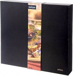 - Kompletní výbava pro 6 osob – vidličky a steakové nože + kuchařský nůž, masový vidlice a prkénko.