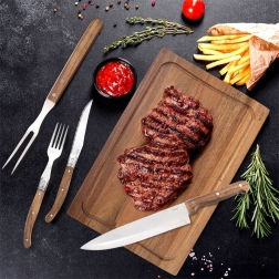 Porcujte a servírujte steaky přímo z prkénka. Sada je perfektní pro domácí grilovačky i restaurace a je dodávána v dárkovém balení.