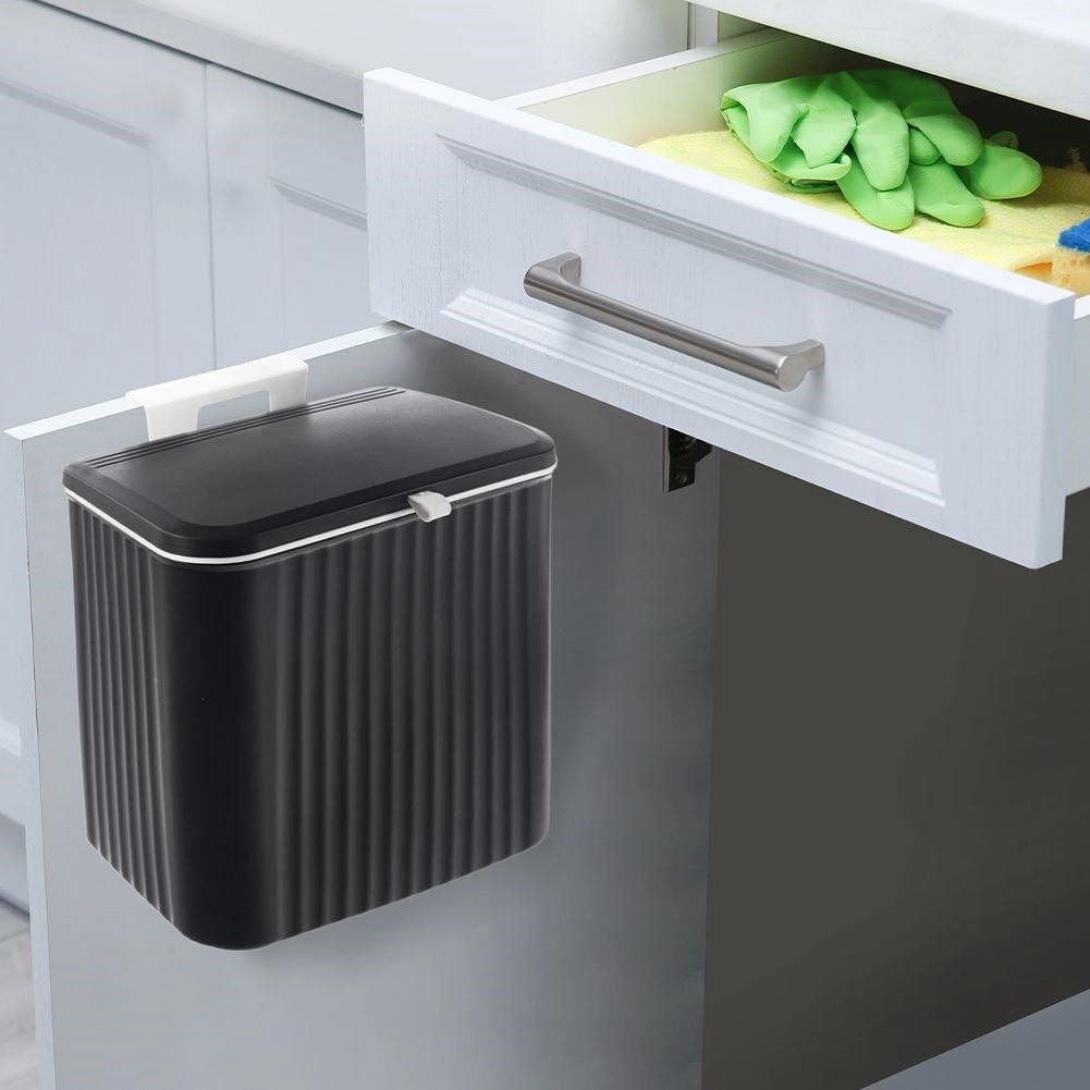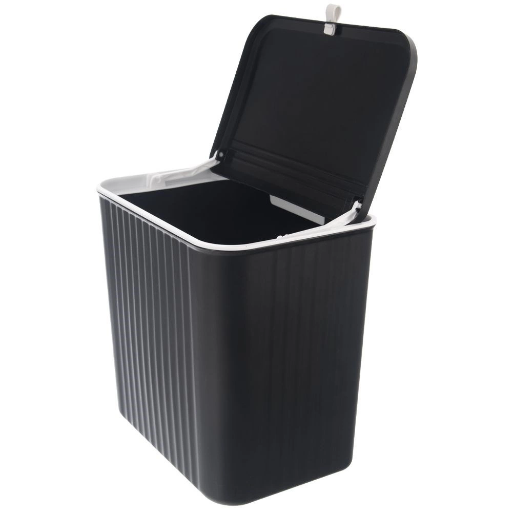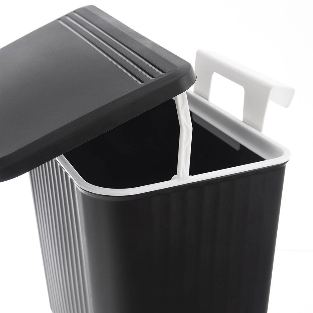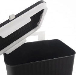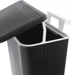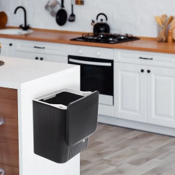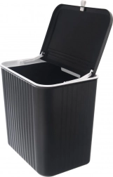 Praktický závěsný odpadkový koš o objemu 13 l pro kuchyň i domácnost. Lze jej zavěsit na dvířka skříňky, namontovat na stěnu nebo umístit klasicky pod dřez. Má dvě možnosti otevírání víka pro rychlé vysypávání zbytků a uzavíratelné víko proti zápachu. Odolné provedení z kvalitního plastu v černé barvě s pohodlným bílým úchytem.
