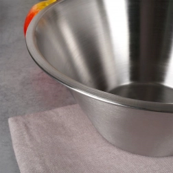 Tato univerzální nerezová mísa s elegantním matným povrchem je nepostradatelným pomocníkem při každodenním vaření i pečení. Díky širokému okraji a stabilnímu dnu se s ní pohodlně míchá i šlehá, zároveň je vhodná i pro přímé servírování na stůl.