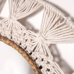 Toto designové zrcadlo je skvělou volbou do obývacího pokoje, předsíně i ložnice. Kombinace přírodních materiálů a ručně působícího pletení vytváří efektní rám, který se stane výrazným prvkem výzdoby v boho, rustikálních i moderních interiérech.