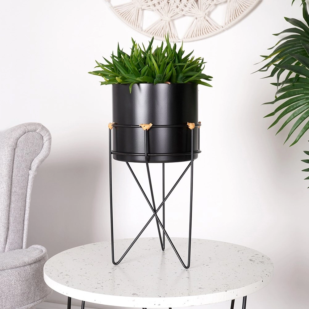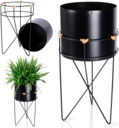 Designová černá osłonka s drátěným stojanem vynikne v moderních i klasických interiérech. Kovový květináč lze ze stojanu snadno vyjmout a přenést. Díky zvýšené poloze rostliny lépe vyniknou a získají přirozené proudění vzduchu.