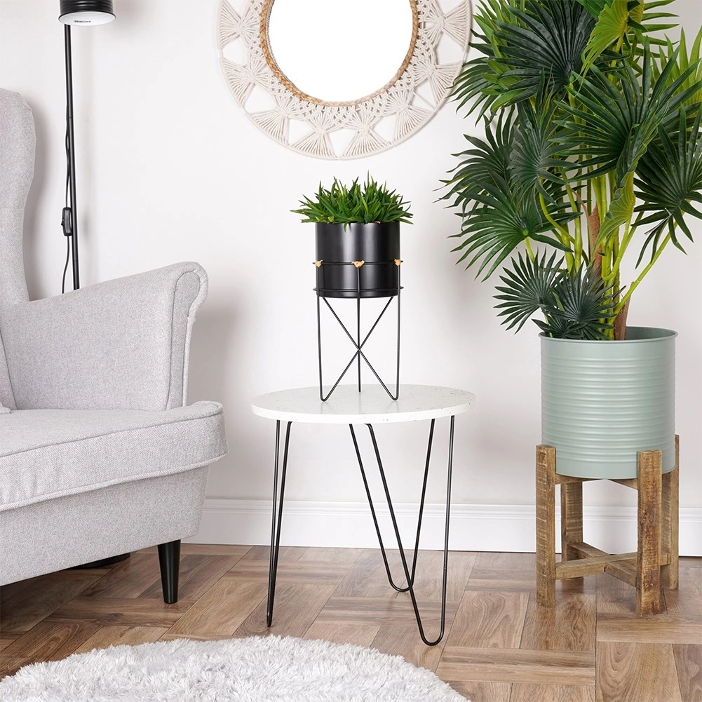 Drátěný stojan s kříženými nohami a kovový květináč poskytují jistotu a dlouhou životnost, aby vaše rostliny stály bezpečně na očích.