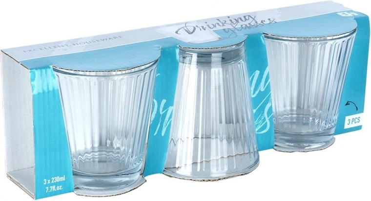 Objevte praktickou a nadčasovou sadu 3 sklenic s objemem 220 ml, které se skvěle hodí na vodu, limonády, džusy, ledové čaje i míchané nápoje. Čiré sklo s vertikálním žebrováním zvýrazní barvu nápoje a současně poskytne jistější úchop.