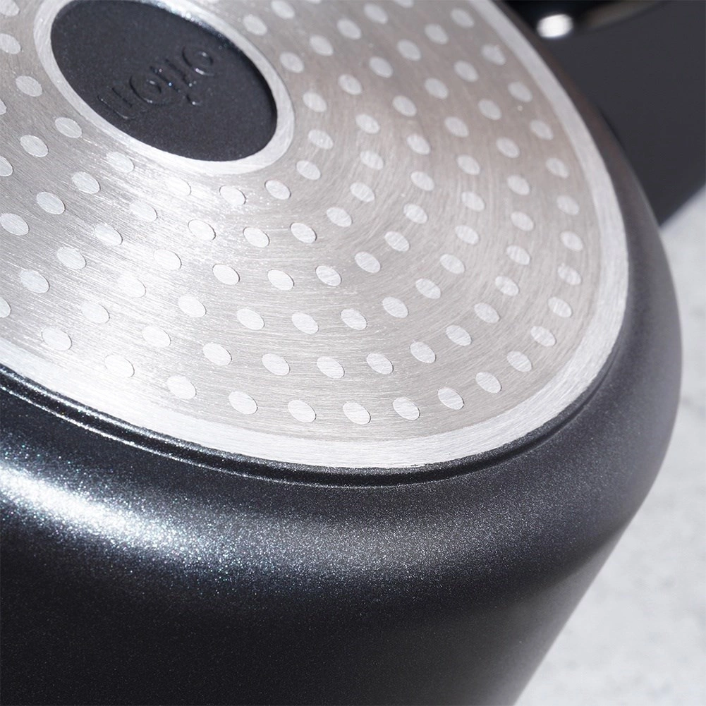Hrnec je skvělý pro polévky, omáčky i jídla z jednoho hrnce. Robustní boční úchyty usnadňují manipulaci, zatímco moderní černý vzhled se efektně vyjímá v jakékoli kuchyni i při servírování na stůl. Konstrukce zajišťuje rychlé a rovnoměrné zahřívání, takže šetří čas i energii.