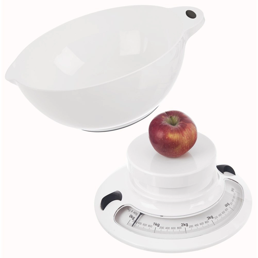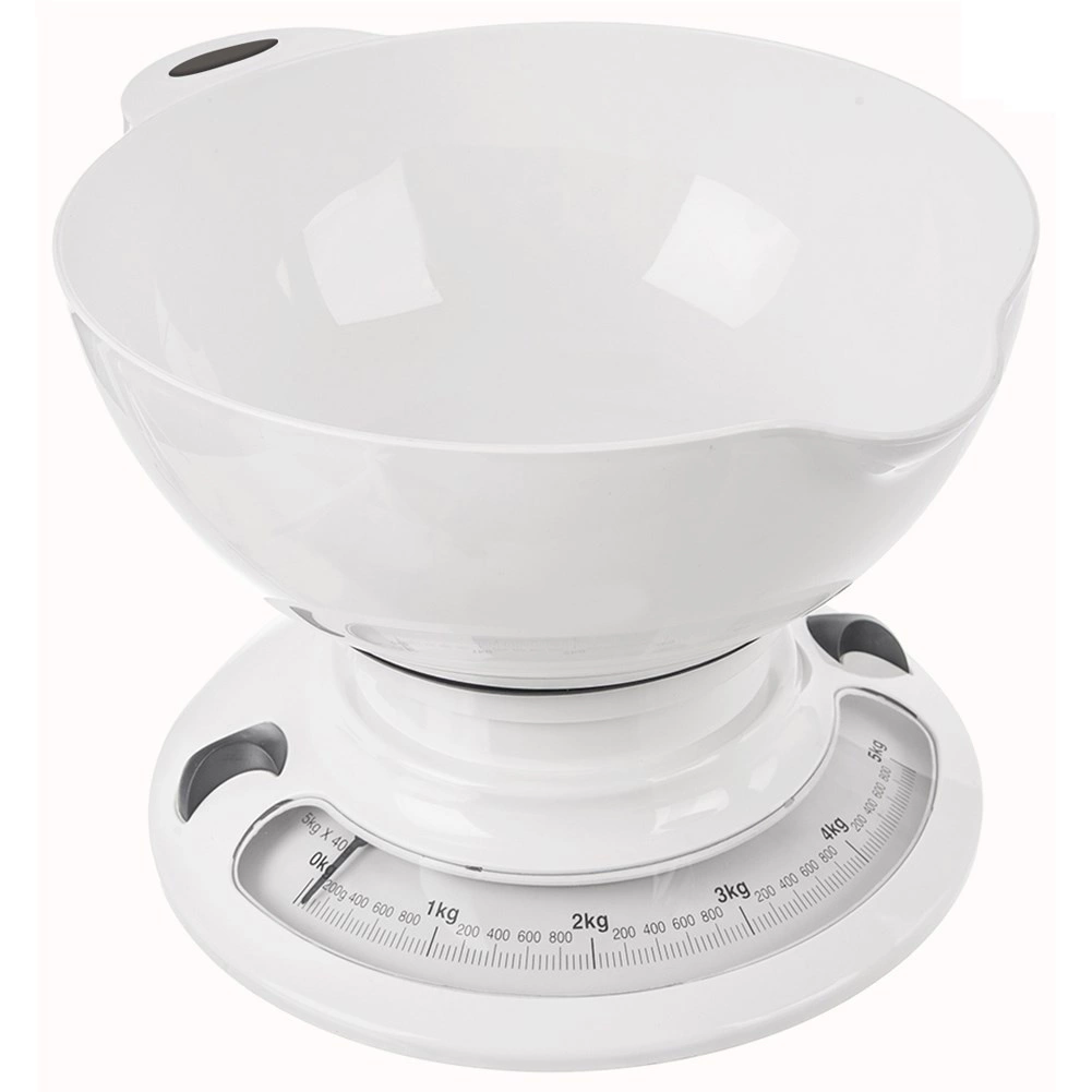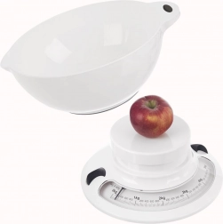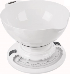 Praktická mechanická kuchyňská váha s odnímatelnou mísou a nosností 5 kg pro přesné vážení surovin. Nabízí čitelné analogové měření v g/kg i lbs/oz, nulování/táru, stabilní základnu s protiskluzem a mísu o objemu 2,6 l s praktickou vylévací hubicí. Bez potřeby baterií – spolehlivý a ekologický pomocník do každé kuchyně.