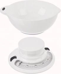 Tato mechanická váha ORION kombinuje klasický design s vysokou funkčností. Odnímatelná plastová mísa v bílé barvě má objem 2,6 l a usnadní vážení i přelévání díky praktické hubici. Přehledný ciferník s měřítkem do 5 kg zobrazuje hodnoty v gramech/kilogramech i v librách/unzcích, takže se hodí pro české i zahraniční recepty.