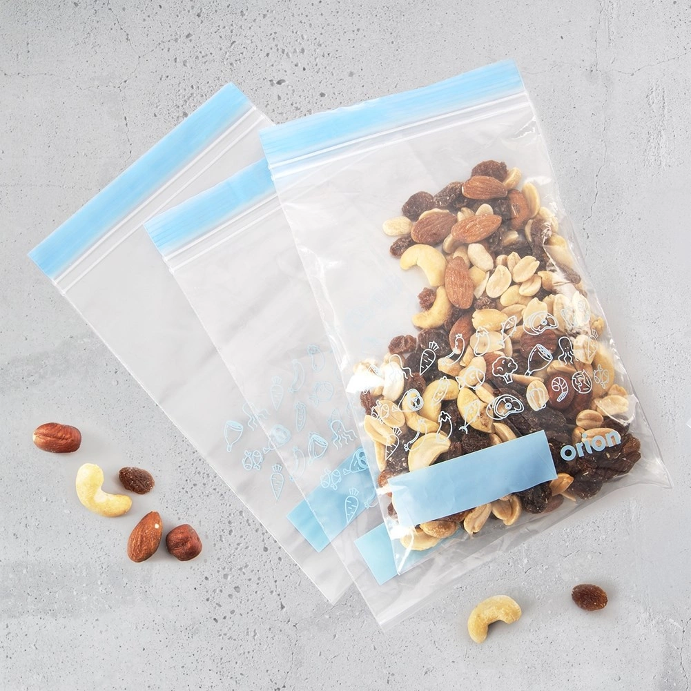 Univerzální zipové sáčky pomohou udržet pořádek v kuchyni i domácnosti. Jsou opakovaně použitelné, průhledné a mají vyhrazené místo pro popisek, takže vždy víte, co je uvnitř. Dvojitý zacvakávací uzávěr zajišťuje spolehlivou těsnost a chrání obsah před vzduchem a vlhkostí.