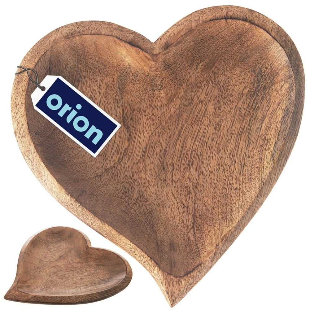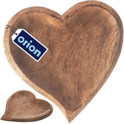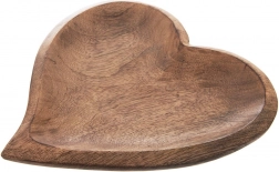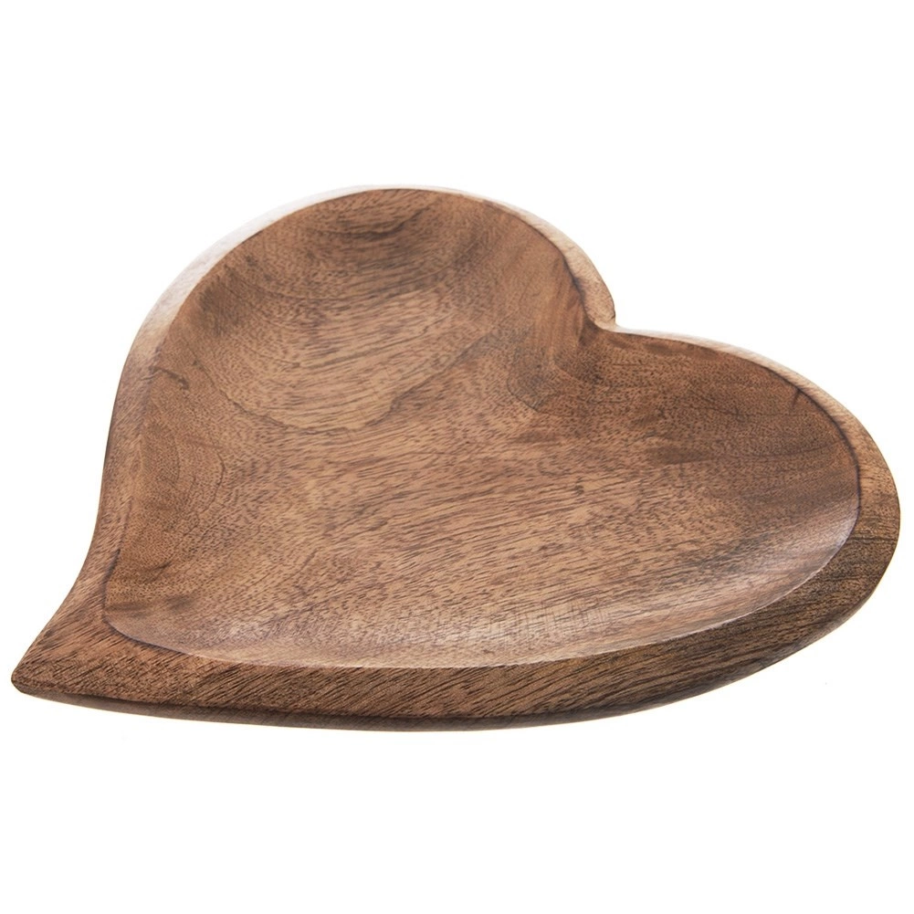 Stylový dřevěný tác ve tvaru srdce z exotického dřeva mangovníku pro elegantní servírování pochutin. Ručně vyřezávaný z jednoho kusu dřeva, s přirozenou kresbou, odolný vůči vlhkosti a nehltající pachy. Ideální na oříšky, olivy, sušené ovoce i malé dezerty – skvěle se hodí do domácnosti i do gastronomie.