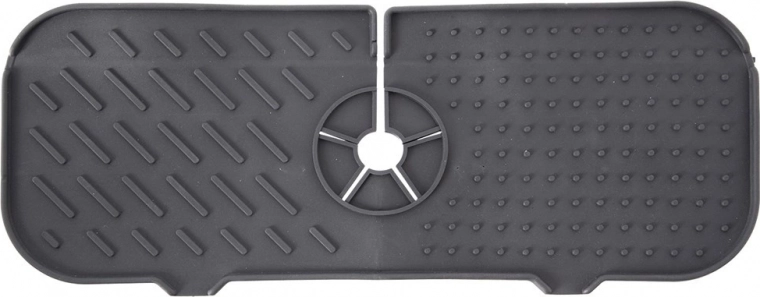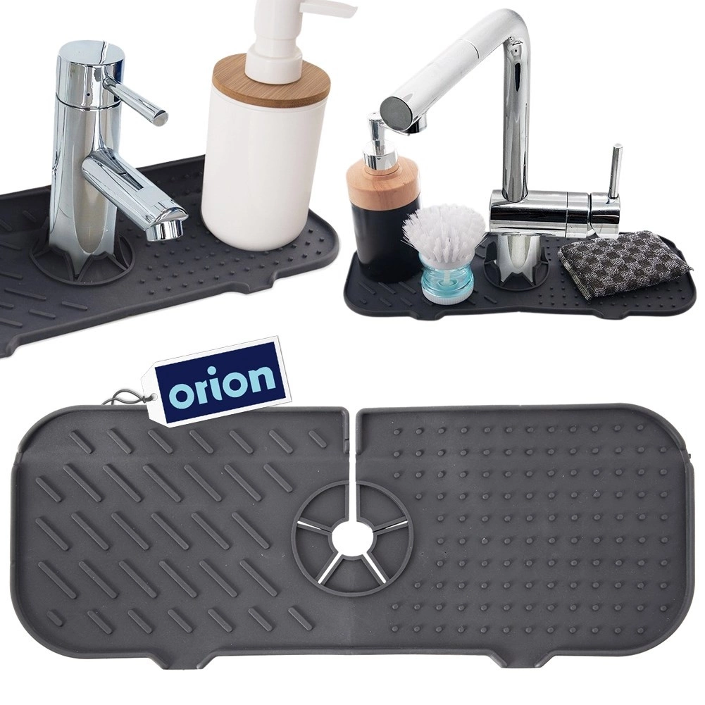 Praktická silikonová podložka ke dřezu o rozměrech 36 × 14 cm udržuje okolí kohoutku a pracovní desku v suchu. Díky středovému výřezu se perfektně přizpůsobí většině baterií, slouží jako odkapávač pro houbičky a přípravky na nádobí a chrání povrch před vlhkostí a vodním kamenem. Vyrobena z odolného silikonového materiálu, snadno se čistí a je vhodná do myčky. Protiskluzový povrch, rychlé odvodnění a dlouhá životnost.
