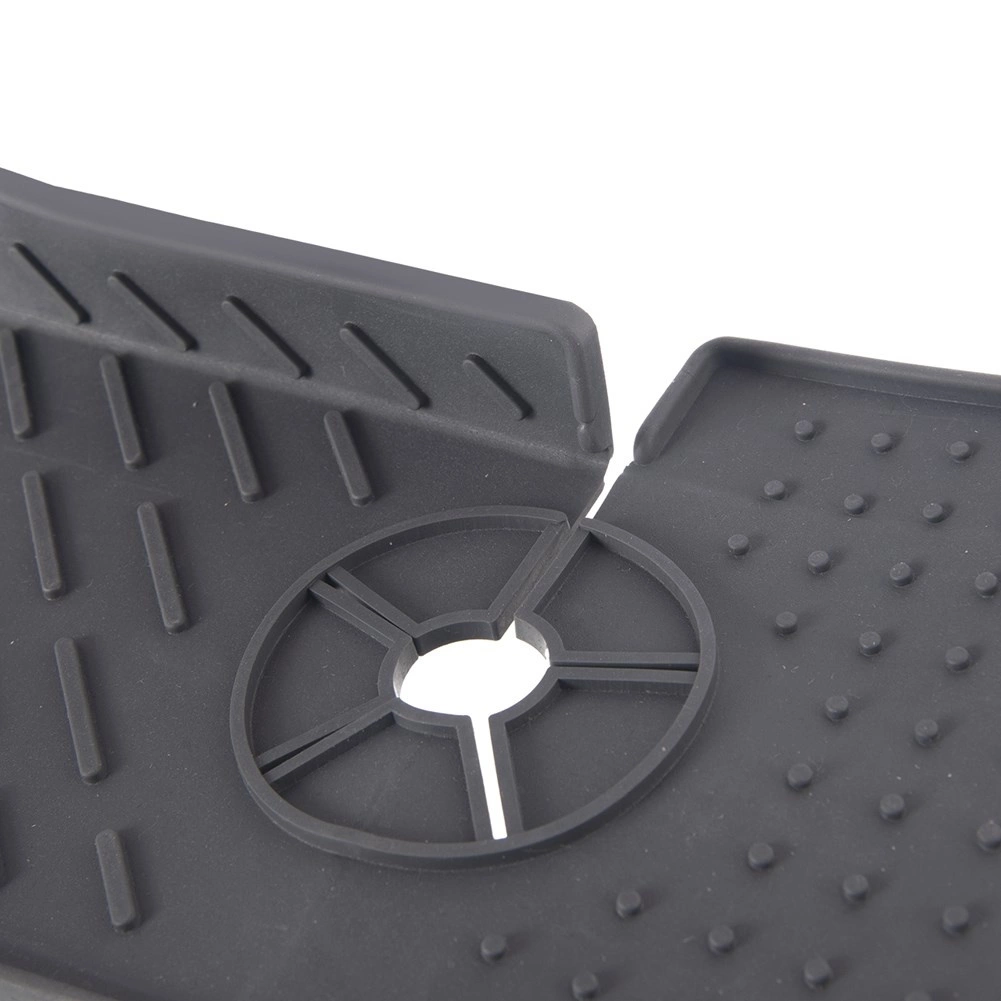 Vysoce kvalitní, pružný silikon v grafitové barvě zajišťuje stabilitu díky protiskluzové struktuře s výstupky a snadné čištění – podložku můžete mýt i v myčce. Dvě tvarované odtokové hrany efektivně odvádějí přebytečnou vodu zpět do dřezu nebo umyvadla.