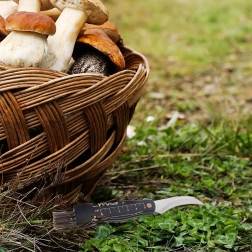 Zakřivená čepel z nerezové oceli o délce 5,5 cm umožňuje snadné seříznutí třeně a základní očištění hub přímo v lese.