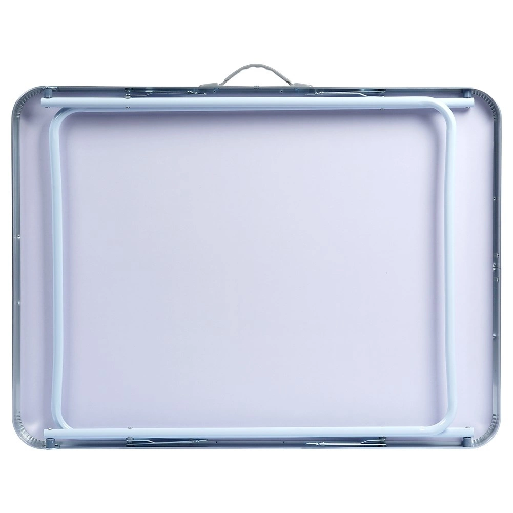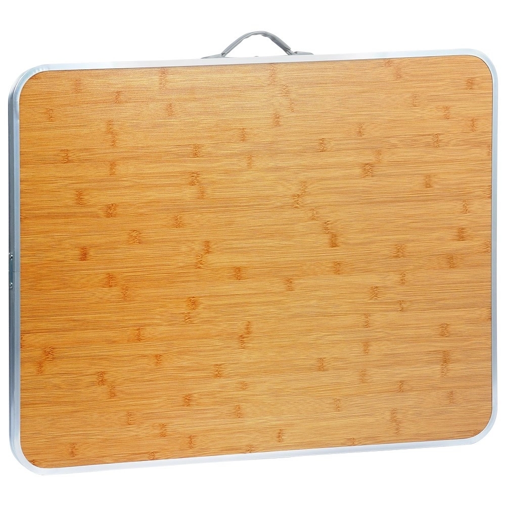 Po složení má stůl plochý tvar a praktické madlo pro pohodlné přenášení. Ideální na kempování, piknik i cestování.