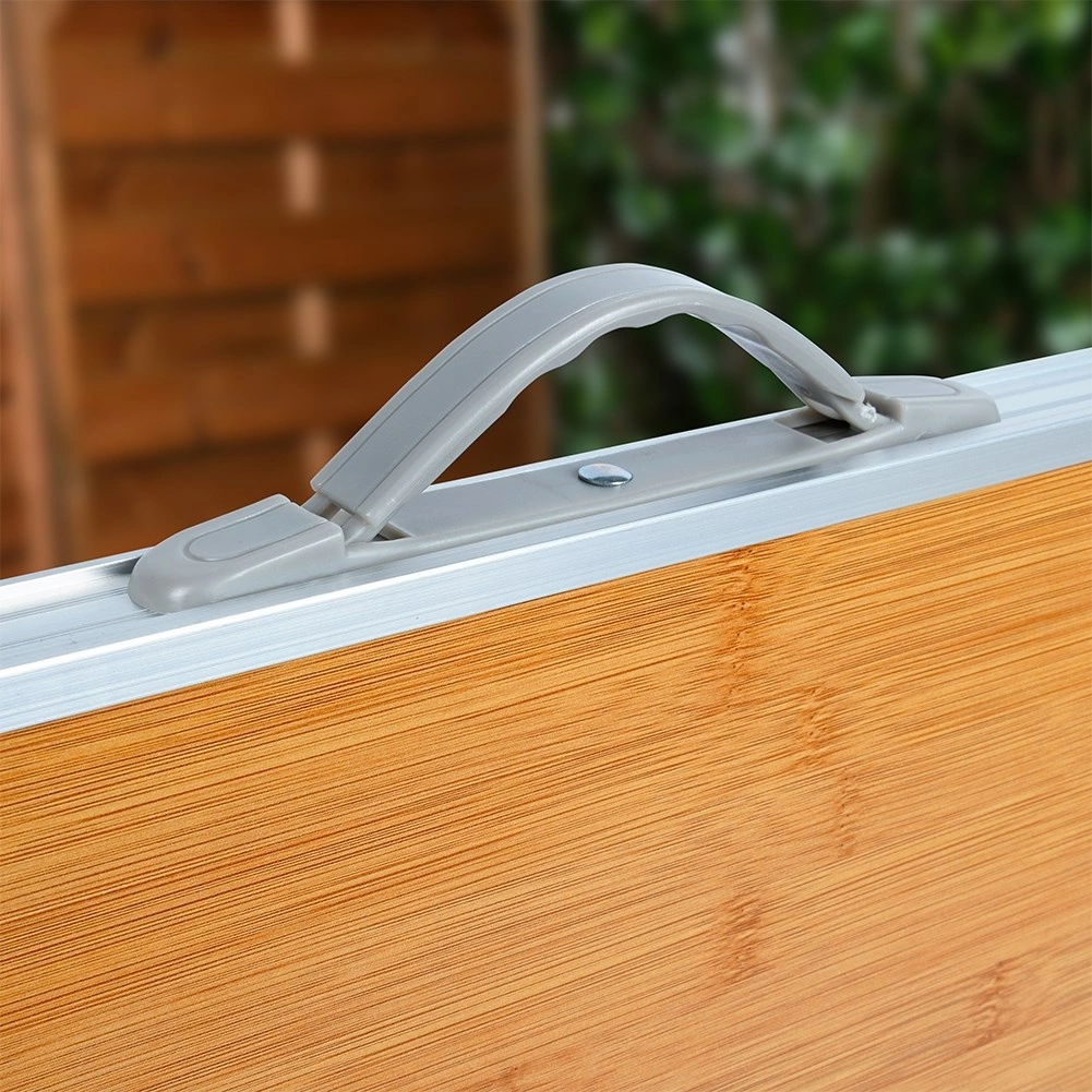 Lehký a odolný skládací stůl je ideální na zahradu, balkon, terasu i na cesty – kempování, stanování či piknik. Deska z MDF v moderním dřevodekoru je chráněna speciální povrchovou úpravou, hliníkový okraj a ocelové nohy zajišťují stabilitu a dlouhou životnost. Po složení má kompaktní rozměry a tvar plochého kufříku s pohodlným uchem.