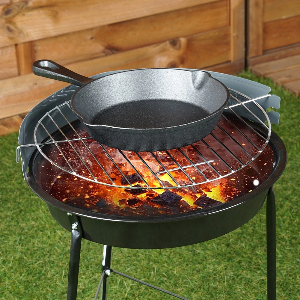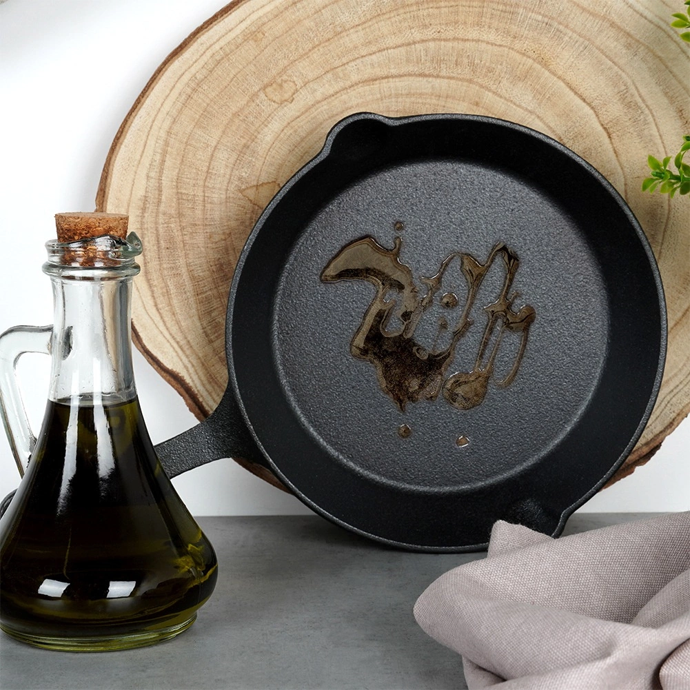 Pánev využijete v kuchyni, na kempování i při grilování – zvládne plynové, elektrické, keramické, halogenové i indukční varné desky, přímý oheň i troubu. Pro dlouhou životnost stačí dodržovat jednoduchou údržbu: po použití umýt, důkladně vysušit a lehce naolejovat.