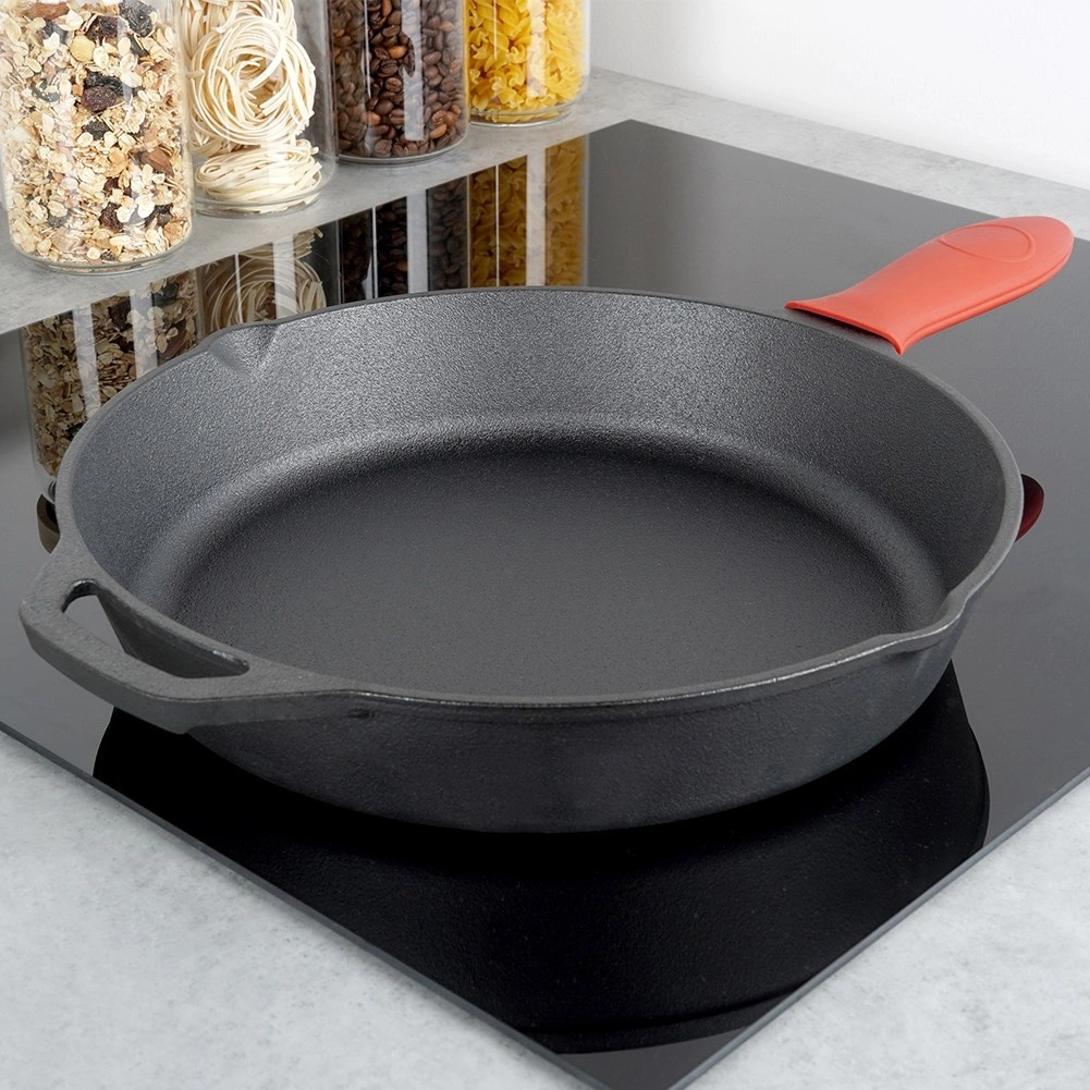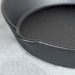 Masivní litina se zahřívá rovnoměrně a dlouho drží teplo – perfektní pro prudké restování, smažení i pečení bez studených míst.
