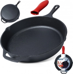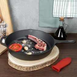 Robustní litinová pánev je ideální pro smažení, restování, dušení i pečení. Masivní litina se zahřívá rovnoměrně a skvěle drží teplo, takže pokrmy zůstávají déle teplé a šťavnaté. Díky odolné konstrukci je pánev vhodná pro každodenní vaření doma, na chalupě i při kempování.