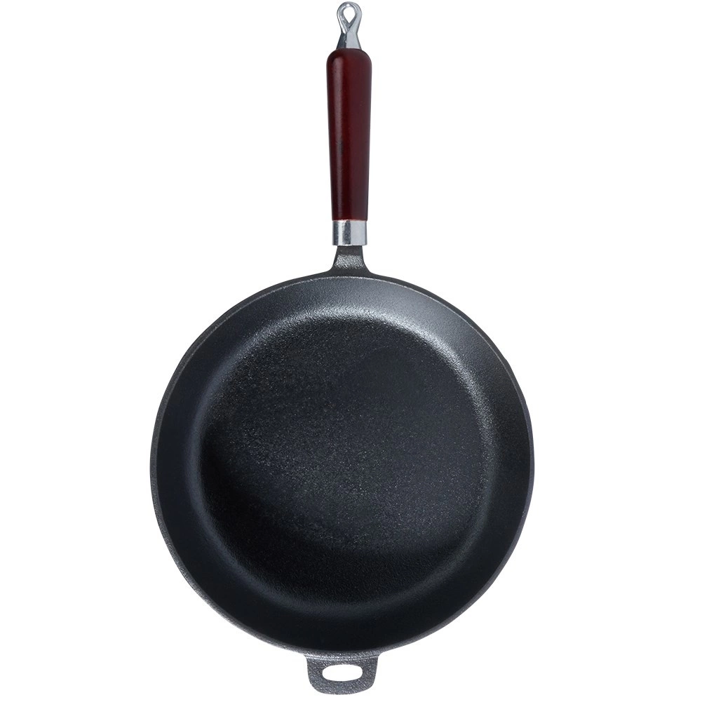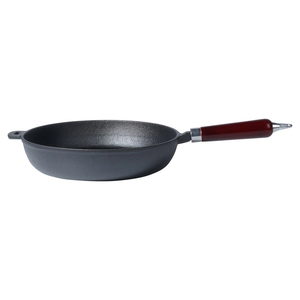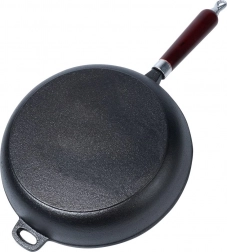 Pánev je vhodná pro plynové, elektrické, sklokeramické, halogenové a indukční varné desky. Lze ji použít i v troubě (po sejmutí dřevěné rukojeti) nebo přímo nad ohněm. Praktické pomocné ucho usnadňuje manipulaci, otvor v rukojeti umožní zavěšení. Správná péče (mytí, vysušení a pravidelné natírání olejem) zajistí dlouhou životnost bez koroze.