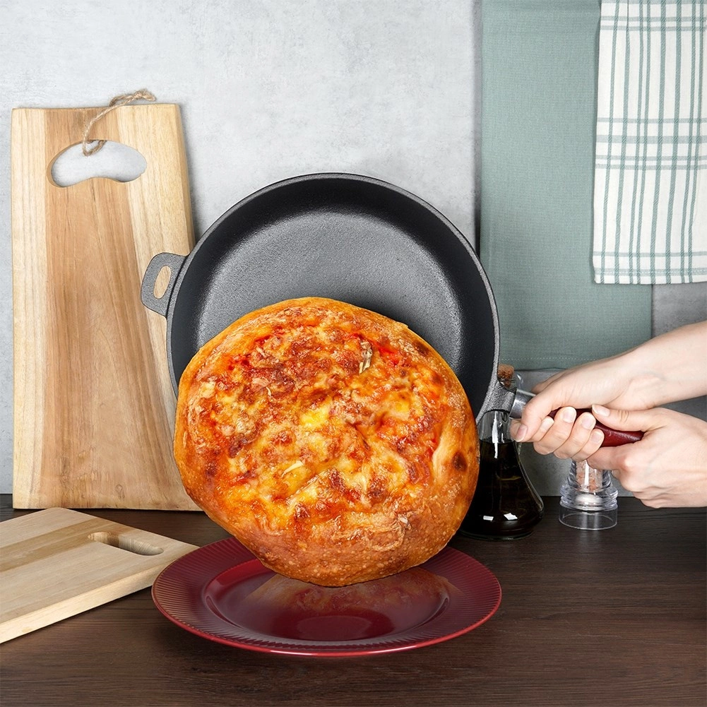 Tato kulatá litinová pánev z řady CAST LINE je ideální pro smažení, dušení i zapékání. Těžká, odolná litina se zahřívá rovnoměrně a udržuje stabilní teplotu, takže maso získá perfektní kůrku a zelenina si uchová šťavnatost. Díky robustní konstrukci je skvělá do kuchyně, na kemp i na zahradní gril.