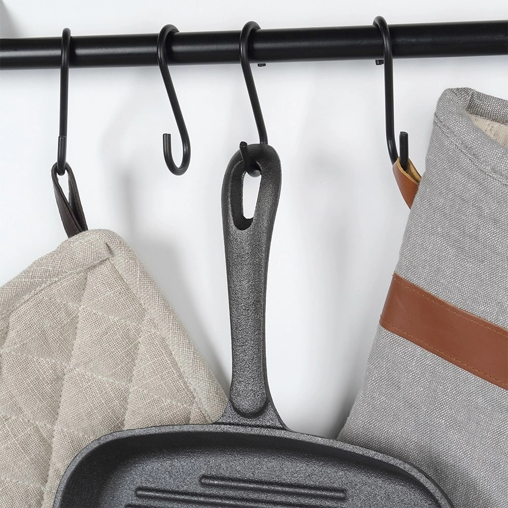 Tato robustní litinová pánev 24,5 × 24 cm je stvořená pro dokonale propečené steaky, zeleninu i brambory. Masivní litina se zahřívá rovnoměrně, dlouho drží teplo a pokrmy tak zůstávají déle teplé. Žebrovaný povrch vytváří výrazné grilovací pruhy a umožňuje odvádění přebytečného tuku.