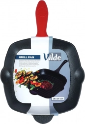 Součástí je červený silikonový návlek pro bezpečný úchop dlouhé rukojeti. Pomocné ouško naproti rukojeti zjednodušuje přenášení. Pánev je univerzální – vhodná na plyn, elektřinu, sklokeramiku, halogen i indukci, stejně tak na gril a do trouby. Díky otvoru v rukojeti ji snadno zavěsíte.
