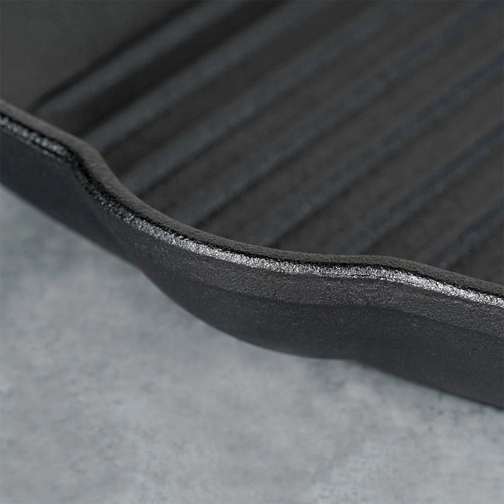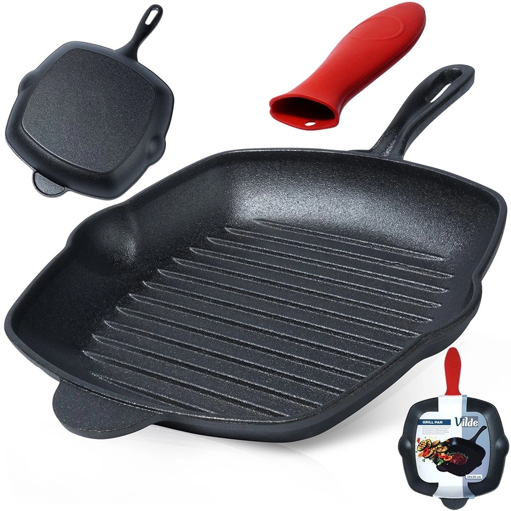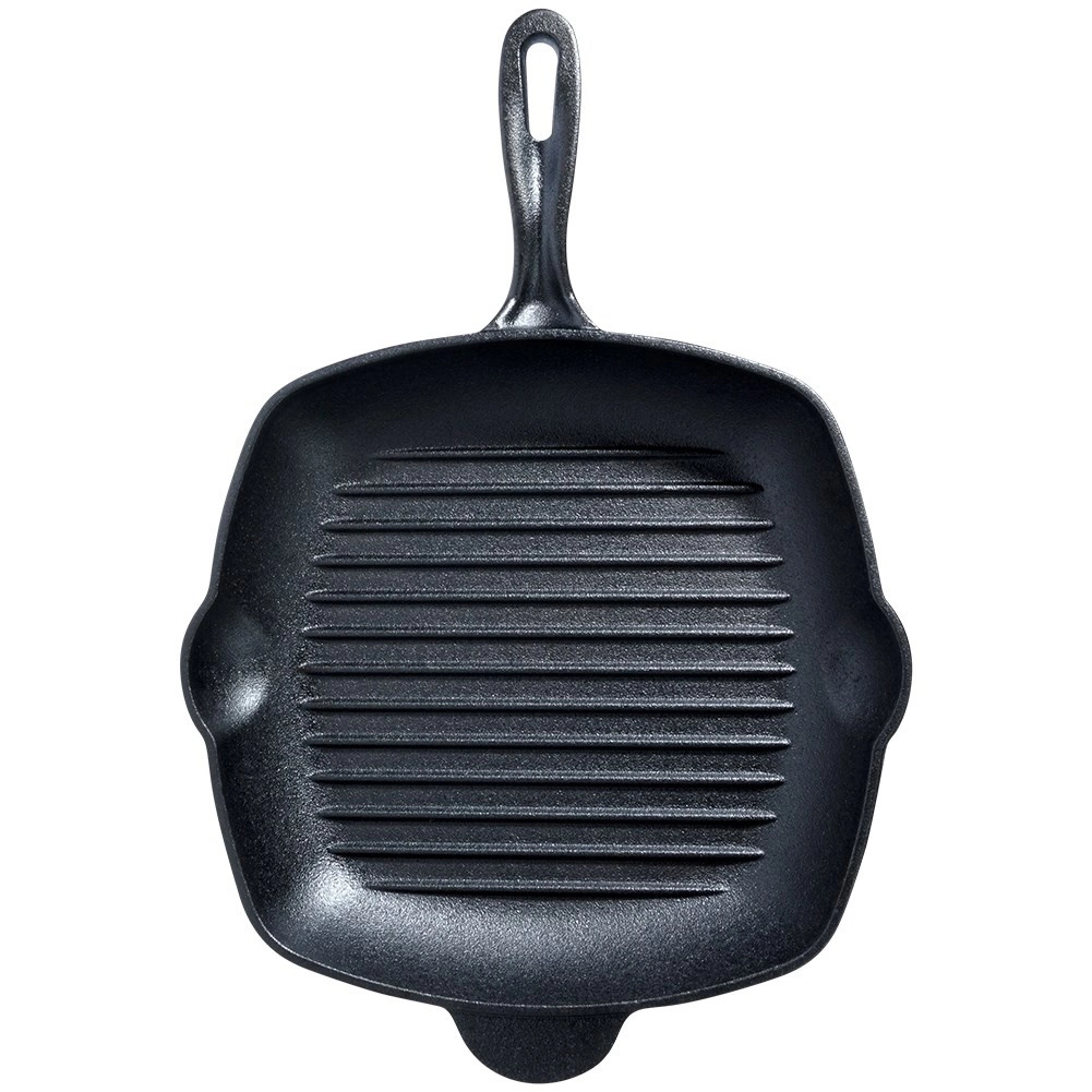 Litinová pánev s výrazným žebrováním vám umožní grilovat doma jako na venkovním grilu. Litina skvěle vede a drží teplo, takže dosáhnete intenzivního opékání, šťavnatého středu a krásných grilovacích pruhů. Praktické výlevky na obou stranách usnadní cezení přebytečného tuku i servírování omáček.
