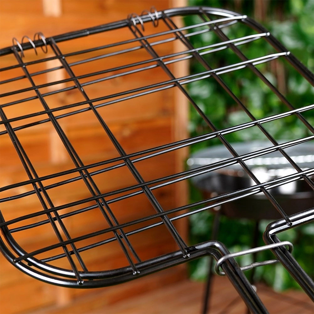Koš je univerzální – hodí se na burgery, steaky, ryby i zeleninu. Hinged clamshell konstrukce s pevnou západkou drží suroviny na místě a umožňuje snadné otočení celé plochy najednou, takže dosáhnete rovnoměrného propečení a krásných mřížkových stop.