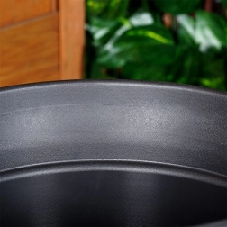 Univerzální kulatý květináč s horním průměrem 38 cm a výškou 34 cm je ideální na terasu, balkon i k vchodovým dveřím. Vzhled kamene v moderní černé barvě dodá rostlinám reprezentativní rám a zároveň je nádoba lehká a snadno přenositelná.