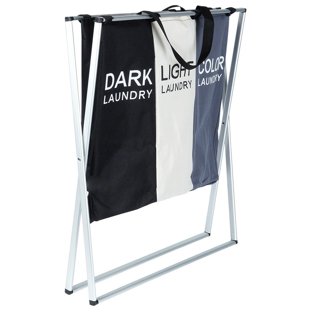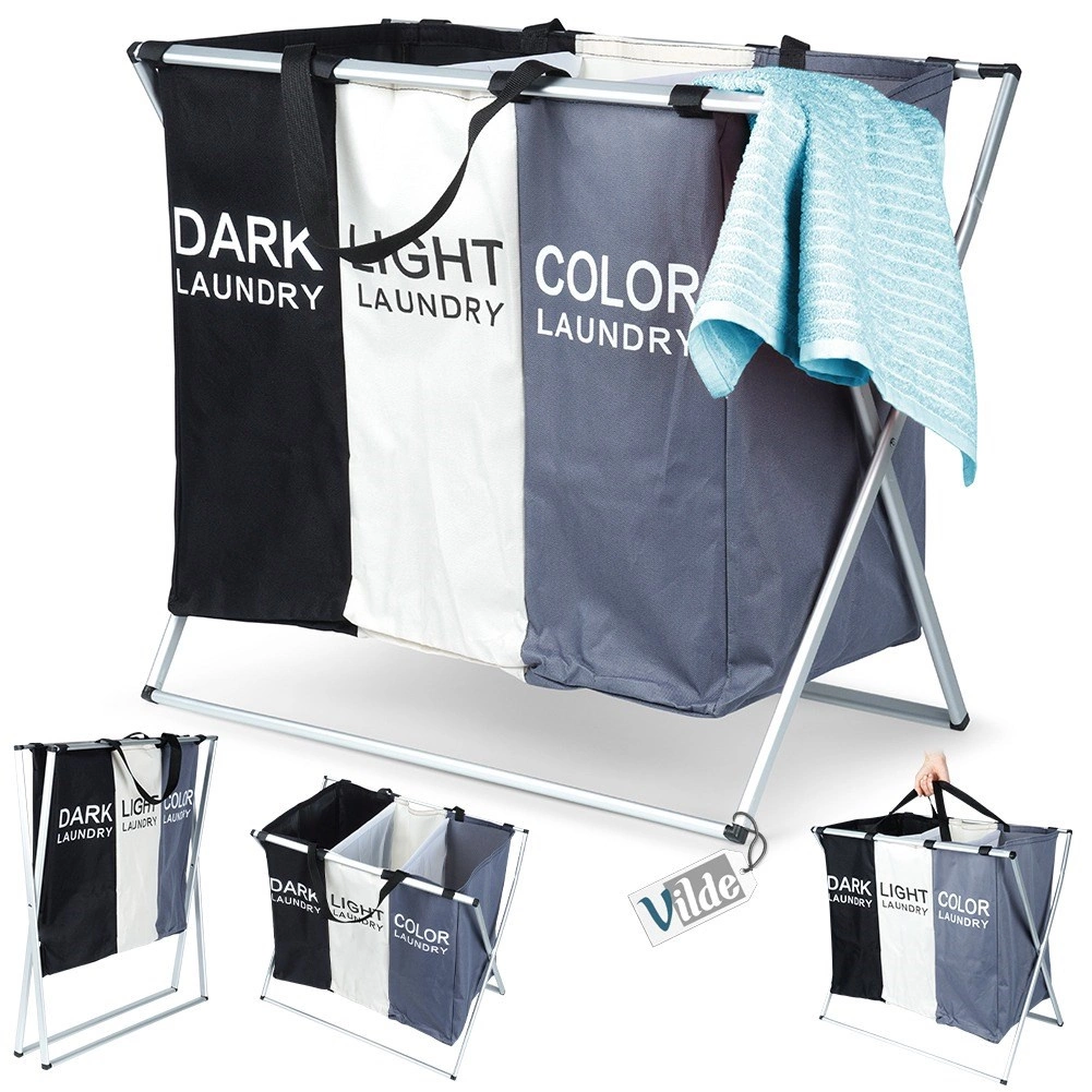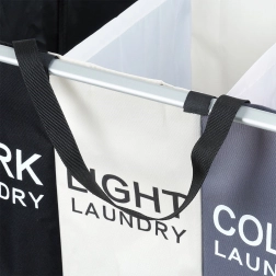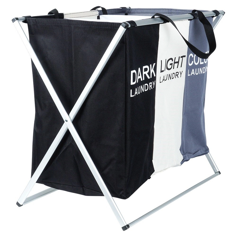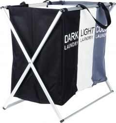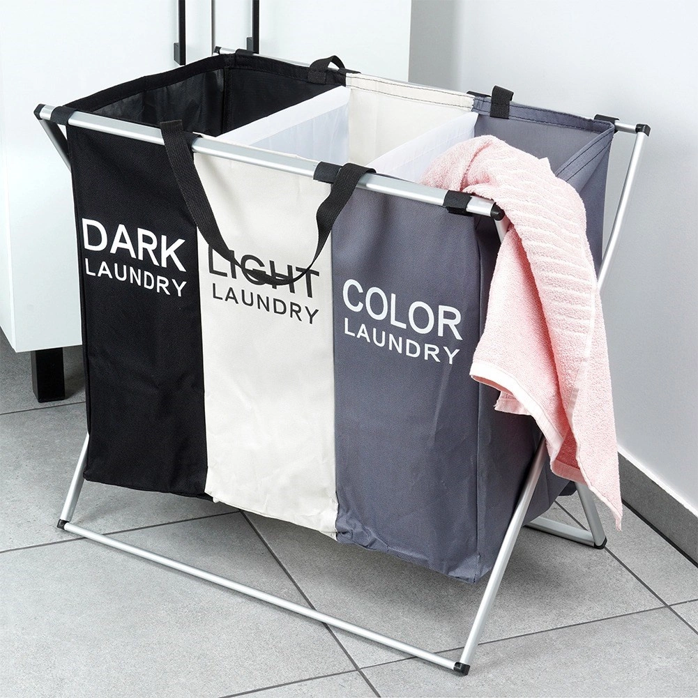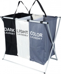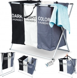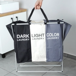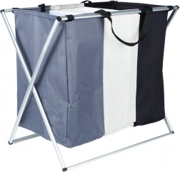 Udržujte pořádek v prádle s přehledným tříkomorovým košem, který umožňuje okamžité třídění na tmavé, světlé a barevné. Lehký, ale stabilní kovový rám ve stříbrné barvě a pevné textilní vaky zajišťují dlouhou životnost a pohodlné používání každý den.