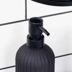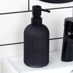 Stylový dávkovač na tekuté mýdlo nebo prostředek na nádobí je vyroben z kvalitního skla v matně černé barvě. Žebrované tělo nejen skvěle vypadá, ale také zajišťuje protiskluzový úchop. Díky objemu 400 ml je ideální pro každodenní používání.