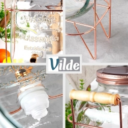 Široké hrdlo umožňuje snadno vkládat plátky citrusů, bylinky a kostky ledu. Díky průhlednému sklu máte vždy přehled o obsahu i množství. Dávkovač se nehodí pro horké nápoje, je určen pro podávání studených a chlazených drinků. Originální produkt značky VILDE vyrobený v souladu s evropskými standardy.