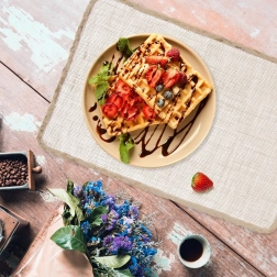 Díky odolnému polyesterovému vláknu a pevnému lemu je podložka stabilní, drží tvar a snadno se udržuje – stačí ji otřít vlhkým hadříkem. Využijete ji pod talíře, hrnky, šálky i jako podložku pod vázu nebo jiné dekorace.
