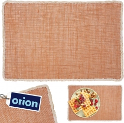 Praktická a dekorativní podložka pod talíř dodá vašemu stolu elegantní vzhled a zároveň jej spolehlivě ochrání. Díky obdélníkovému tvaru perfektně sedí pod běžné talíře a stolní nádobí. Oranžový povrch s přírodním béžovým lemováním podtrhne útulnost domova a skvěle doplní interiéry ve stylu boho.
