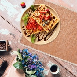 Podložka je vyrobena z odolného polyesterového vlákna, takže je pevná, odolná a snadná na údržbu – nečistoty stačí setřít vlhkým hadříkem. Můžete ji využít nejen pod talíře a hrnky, ale také jako ochrannou podložku pod vázy či další dekorace, aby se předešlo škrábancům a skvrnám na desce stolu.