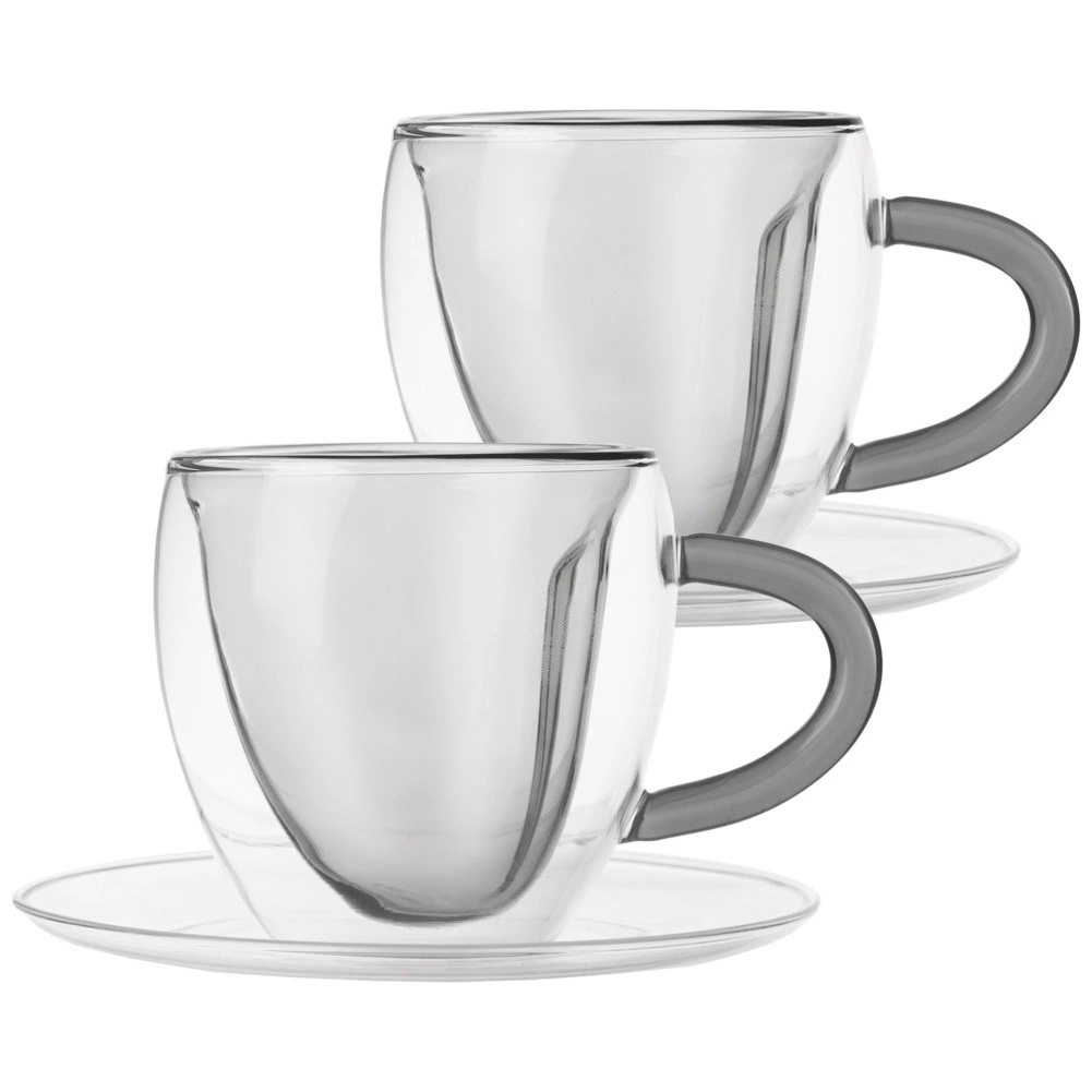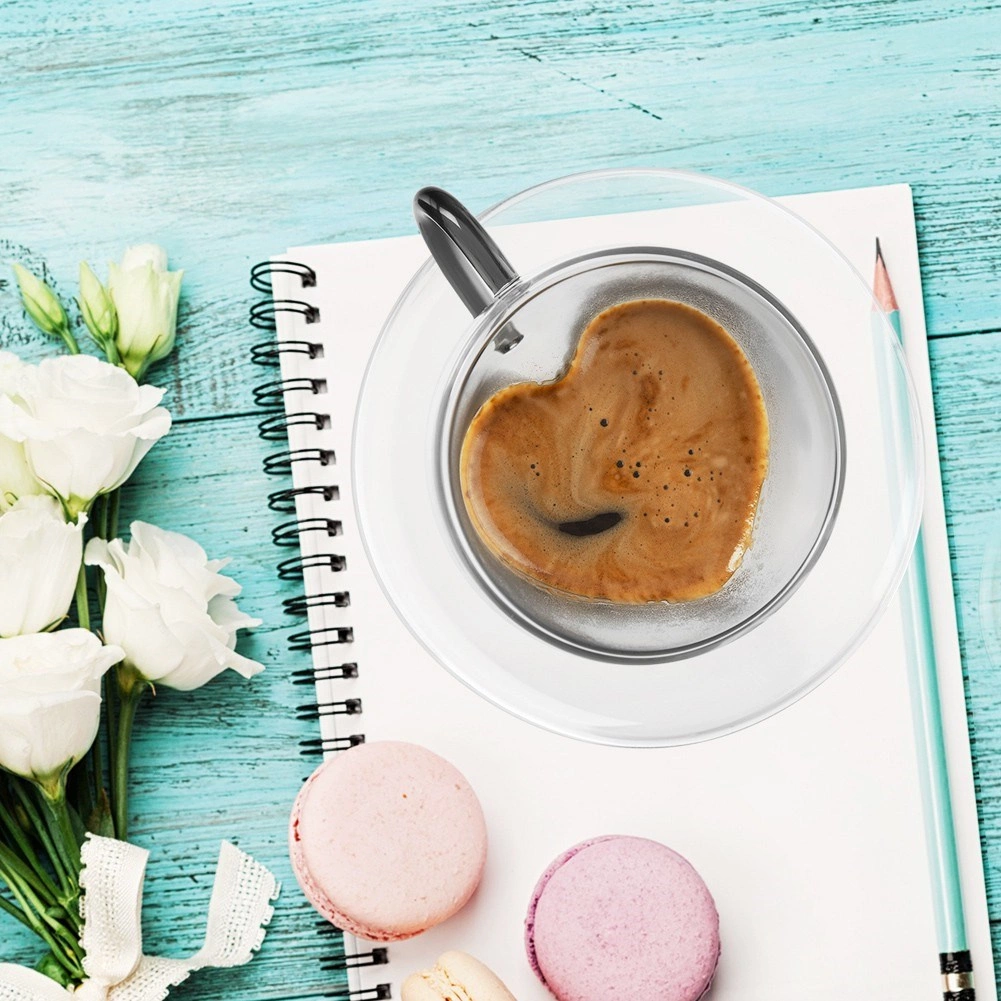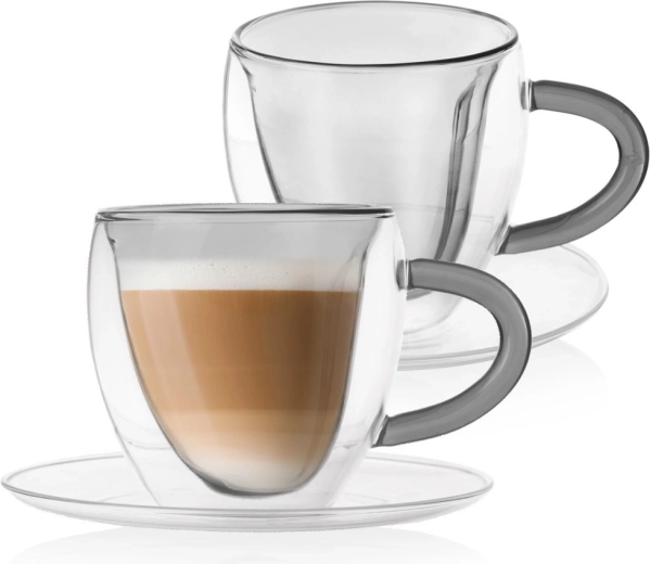 Objevte šálky, které spojují styl a funkci. Dvojitá stěna z borosilikátového skla poskytuje skvělou tepelnou izolaci, takže si vychutnáte kávu i čaj při ideální teplotě a bez rizika popálení rukou. Vnitřní srdcový tvar dodá podávání cappuccina, latte nebo černé kávy jedinečný vizuální efekt.