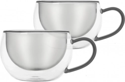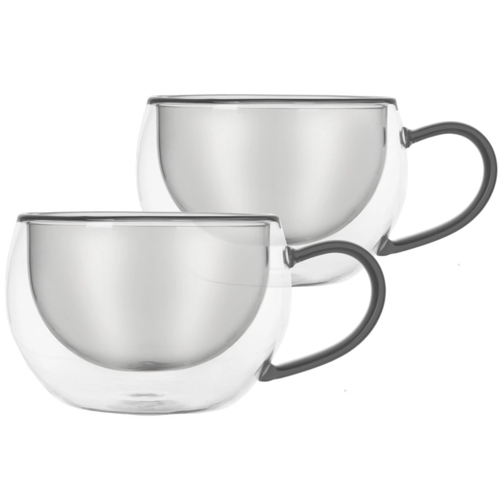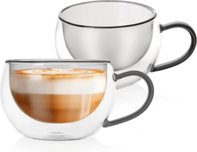 Set 2 průhledných termo sklenic s dvojitou stěnou v moderním designu je ideální pro kávu, čaj i studené nápoje. Prémiové borosilikátové sklo účinně izoluje, takže si déle vychutnáte perfektní teplotu nápoje a sklenice se zvenku méně zahřívá i nerosí.