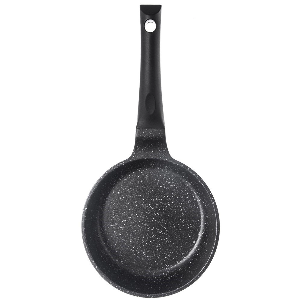 Tato odolná pánev z hliníkového odlitku kombinuje rychlý rozvod tepla s kvalitní nepřilnavou granitovou vrstvou Pfluon Granit bez PFOA a PTFE. Skvěle se hodí na smažení vajíček, masa, zeleniny i malé palačinky – ideální velikost pro rychlé snídaně či porce pro jednoho.