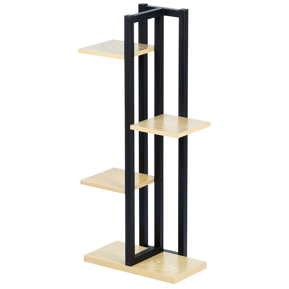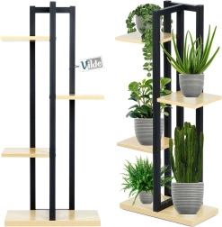 Stylový květinový stojan v loft designu s černým kovovým rámem a policemi v dekoru dřeva nabízí 5 míst na 4 úrovních pro květiny či dekorace. Díky stabilní konstrukci, nosnosti až 50 kg a kompaktním rozměrům 43 × 23 × 93 cm skvěle zapadne do obýváku, kuchyně, kanceláře i na zastřešený balkon.