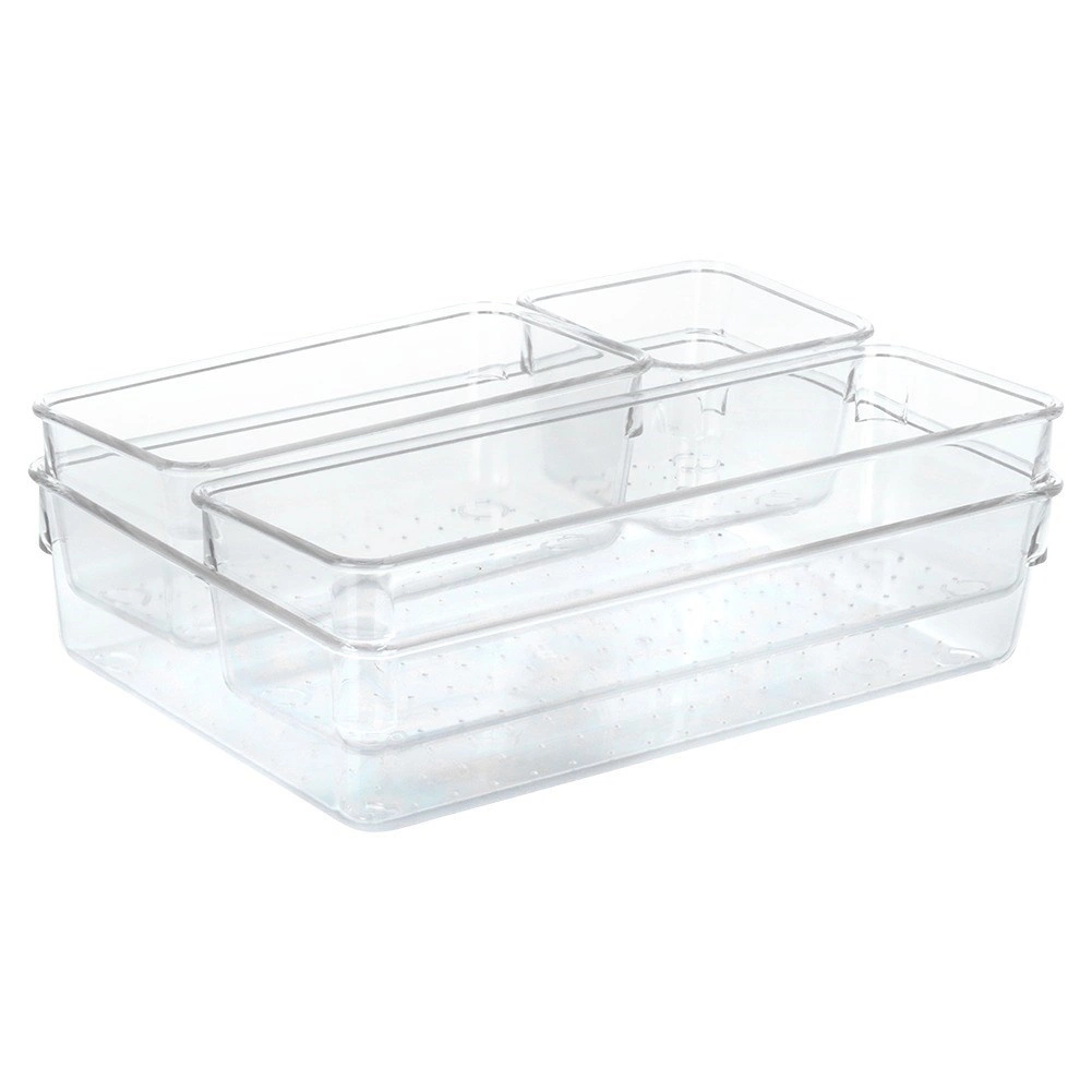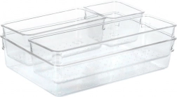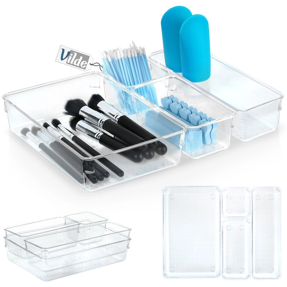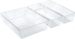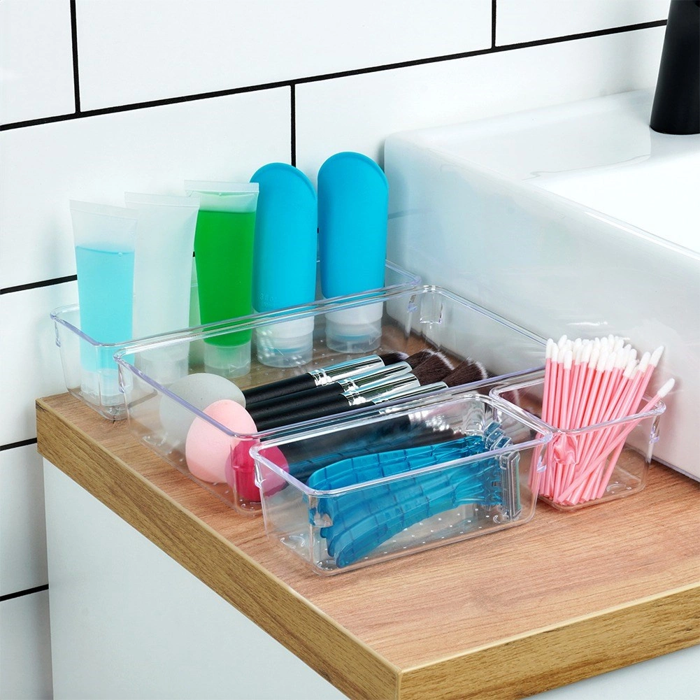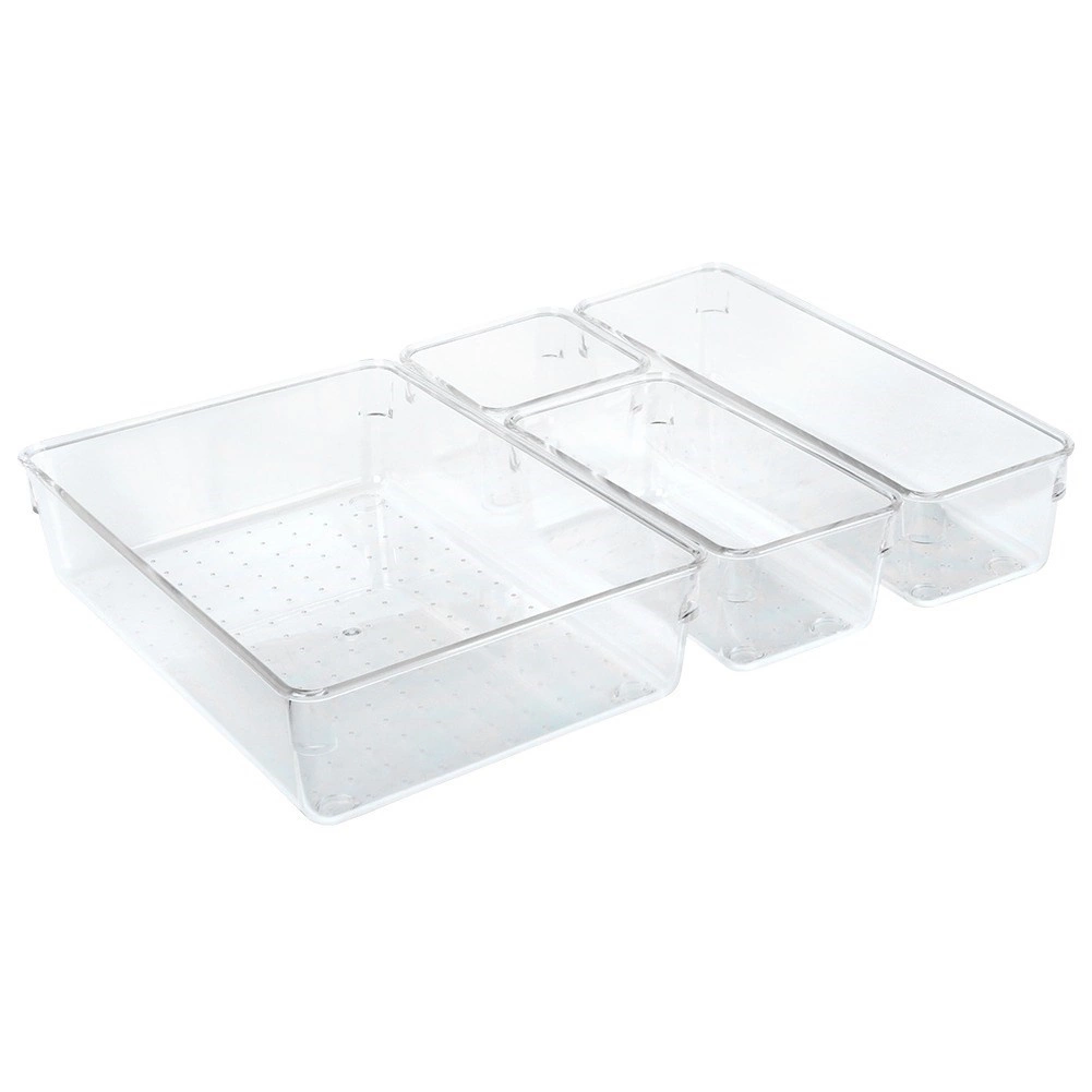 Udržte svůj toaletní stolek i zásuvky dokonale přehledné s tímto 4dílným organizérem z odolného akrylu. Díky průhlednému provedení ihned vidíte vše potřebné, modulární konstrukce umožní libovolné uspořádání a různé velikosti přihrádek se postarají o kosmetiku, štětce, bižuterii i drobné doplňky. Elegantní design zapadne do každého interiéru a snadná údržba šetří čas.