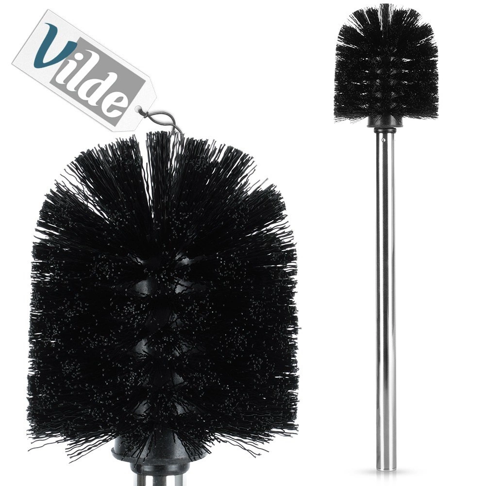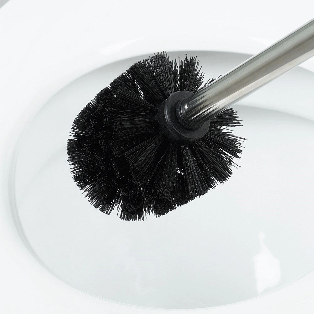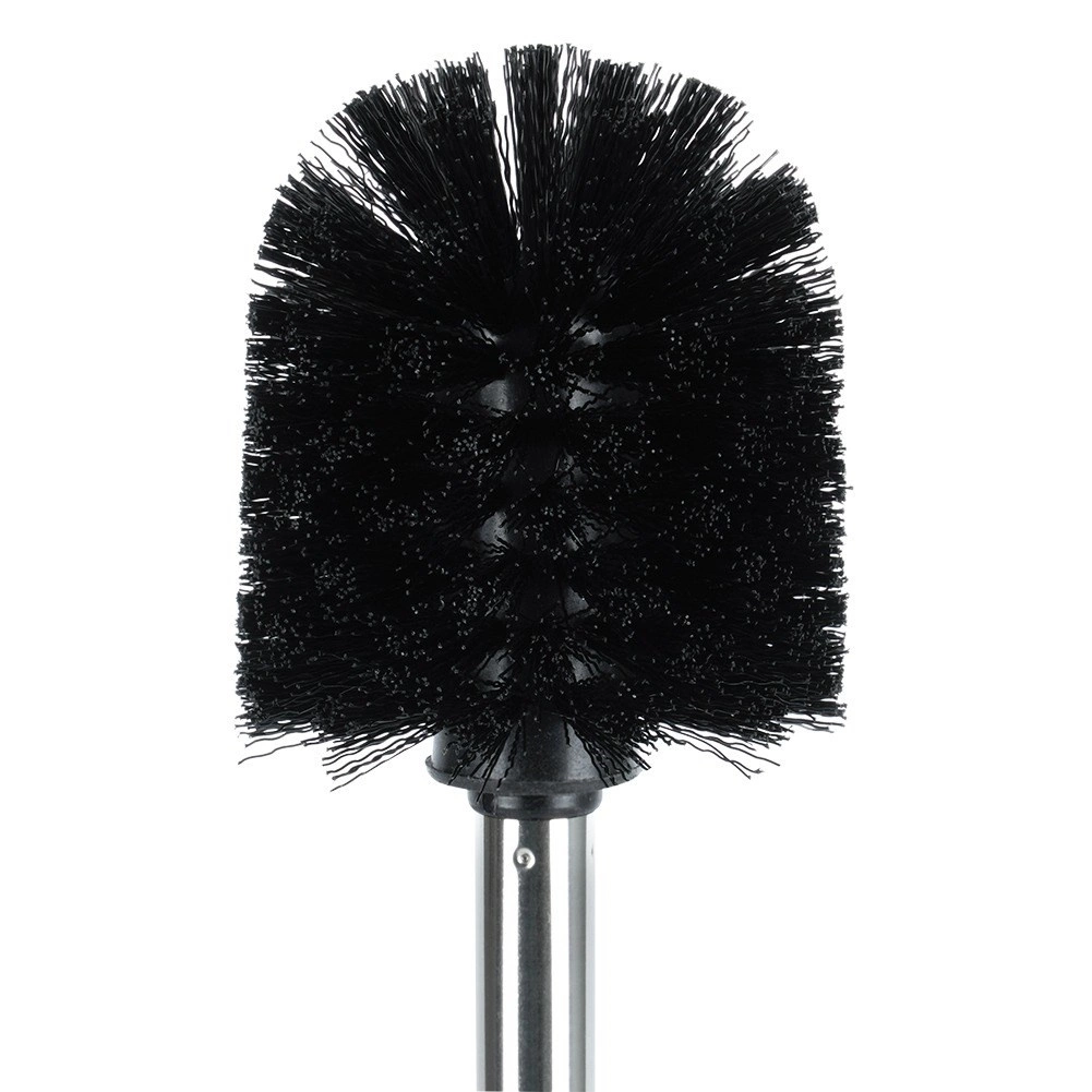 Udržujte toaletu dokonale čistou s náhradní WC štětkou, která spojuje odolné plastové štětiny a pevnou nerezovou rukojeť. Černé štětiny lépe skryjí nečistoty a usnadní průběžné čištění. Díky univerzálním rozměrům pasuje do většiny standardních stojanů a držáků.