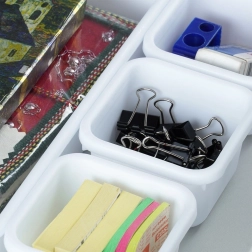 Uchovávejte tužky, poznámky, sponky, štětce či kosmetiku odděleně a vždy po ruce. Přehlednost urychlí práci i úklid.